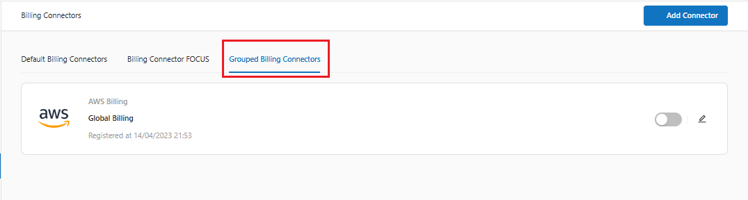 1. On the Billing Connector main screen, in the "**Grouped Billing Connectors**" tab:
