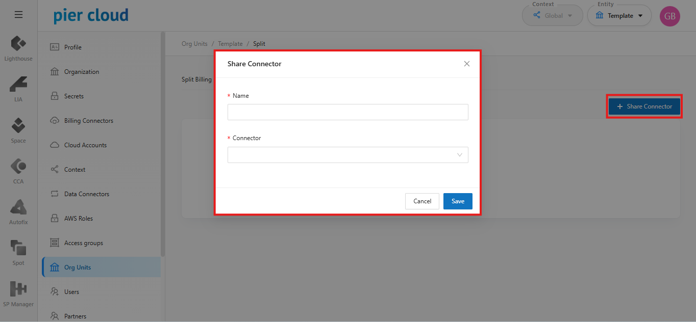 * The shared Data Connector is the basic prerequisite for any Organizational Unit to configure a Split.