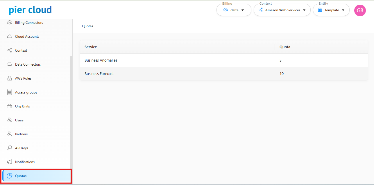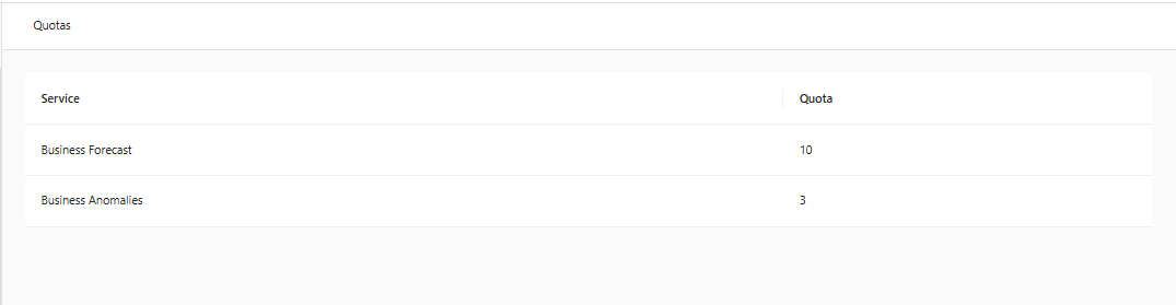 A functionality developed by Pier Cloud that allows you to view the quota limit for business forecasting and business anomalies that is currently enabled for your company.