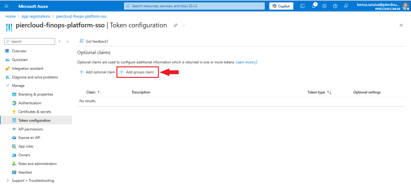 15. Here click on **+ ADD groups** **claim**, as illustrated in the image below.