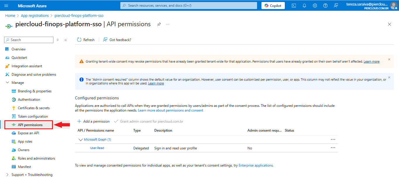 12. Here click on **API permissions**.