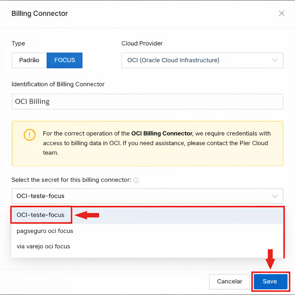 Pier Cloud is our centralized platform for managing cloud data and services. Our focus is to ensure that access to resources is secure, convenient, and efficient. This document is designed to guide you through configuring Focus on the OCI provider.