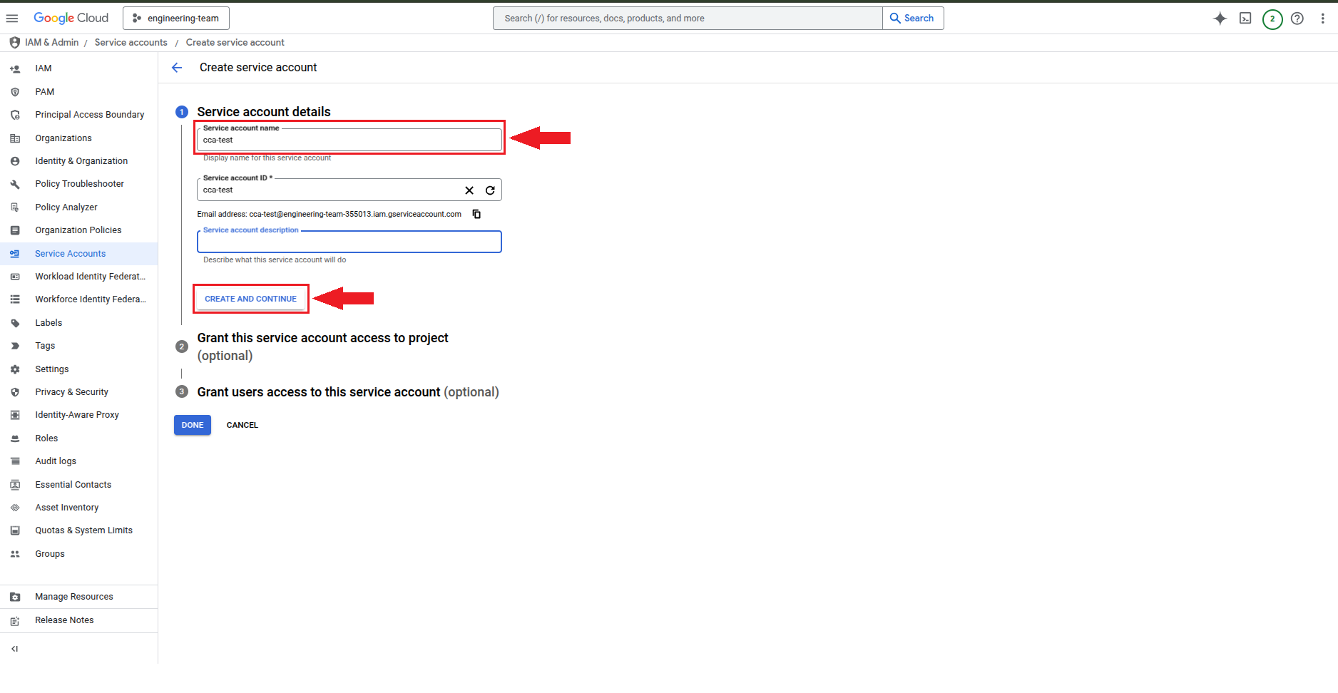 13. With the Service Account key created, we can configure the CCA on the Platform.