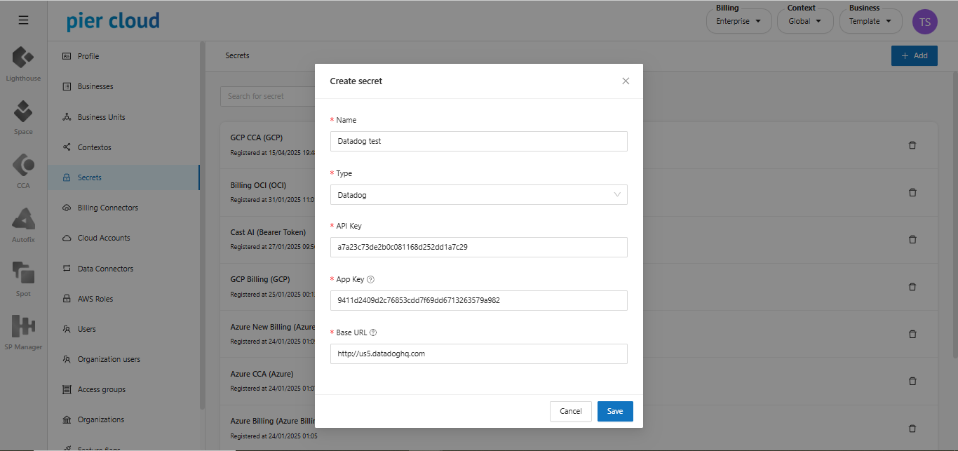#### PART II: Configure the Pier Cloud Platform to receive data from the Datadog integration