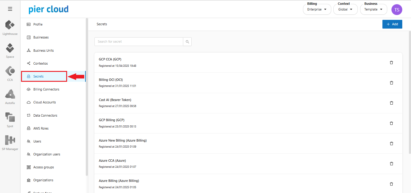 2. Here click on **secrets**, as shown in the image below: