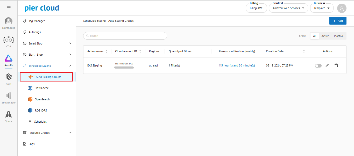 In the **Scheduled Scaling** side menu, select **Auto Scaling Groups:**
