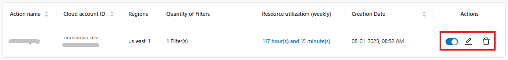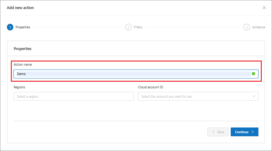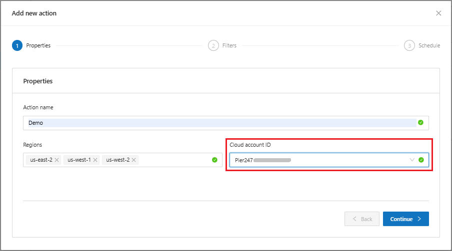 * Select the account ID to which the action will be applied.