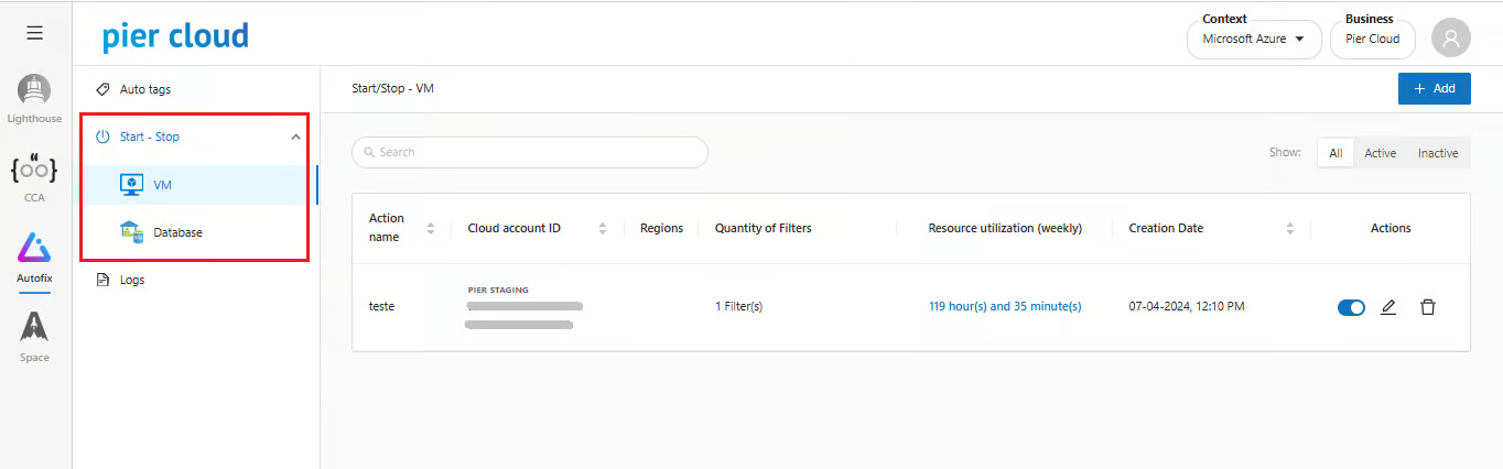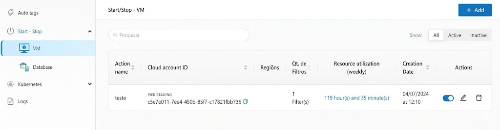 Start / Stop is an Autofix module feature developed to automate the operating cycle of cloud resources. Unlike *Smart Stop* (which acts based on technical idleness), Start / Stop operates based on defined schedules, making it ideal for environments with predictable usage hours. The central objective is to align infrastructure execution time with actual business needs.