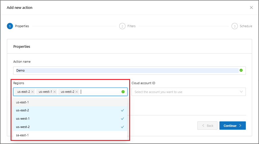 * Define the region, more than one region can be selected. **(For AWS Context Only)**