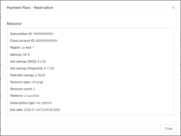 By clicking on the “**View reservation**” button, you can have more detailed information about the recommendation of the selected resource.
