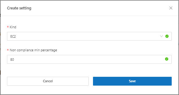 * **Non compliance min percentage:** This will insert the idleness percentage that will make the reservation idle for action recommendation on the selected reservation.&#x20;