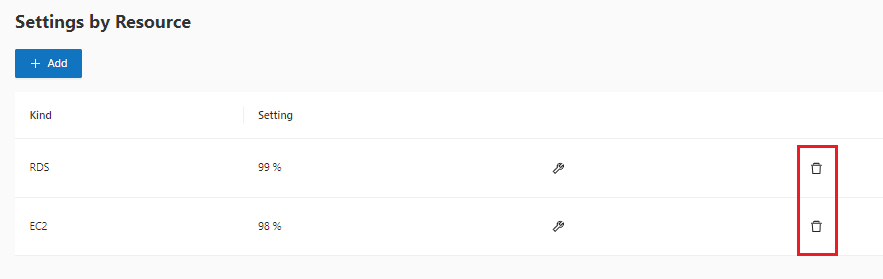When you click save, the system will return to the "**Settings by Resource"** screen.