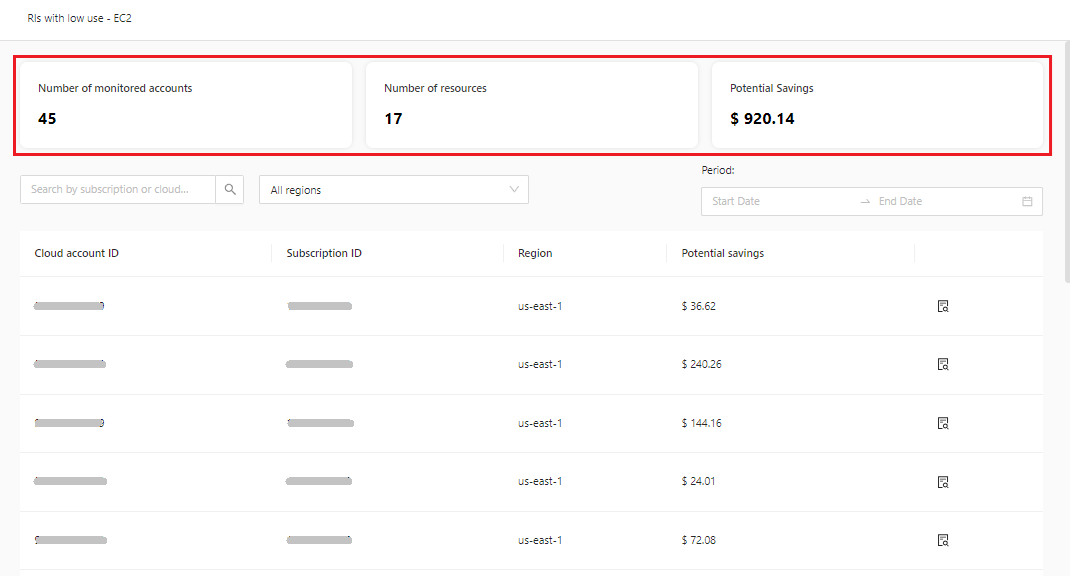 * **Potential Savings:** Total monthly savings to be obtained by executing the recommendations.