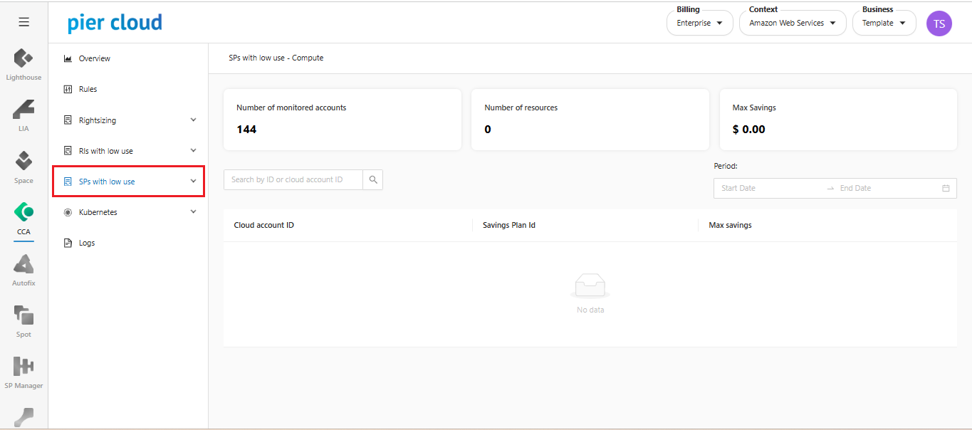 1. In the CCA features menu select **SPs with low use**.