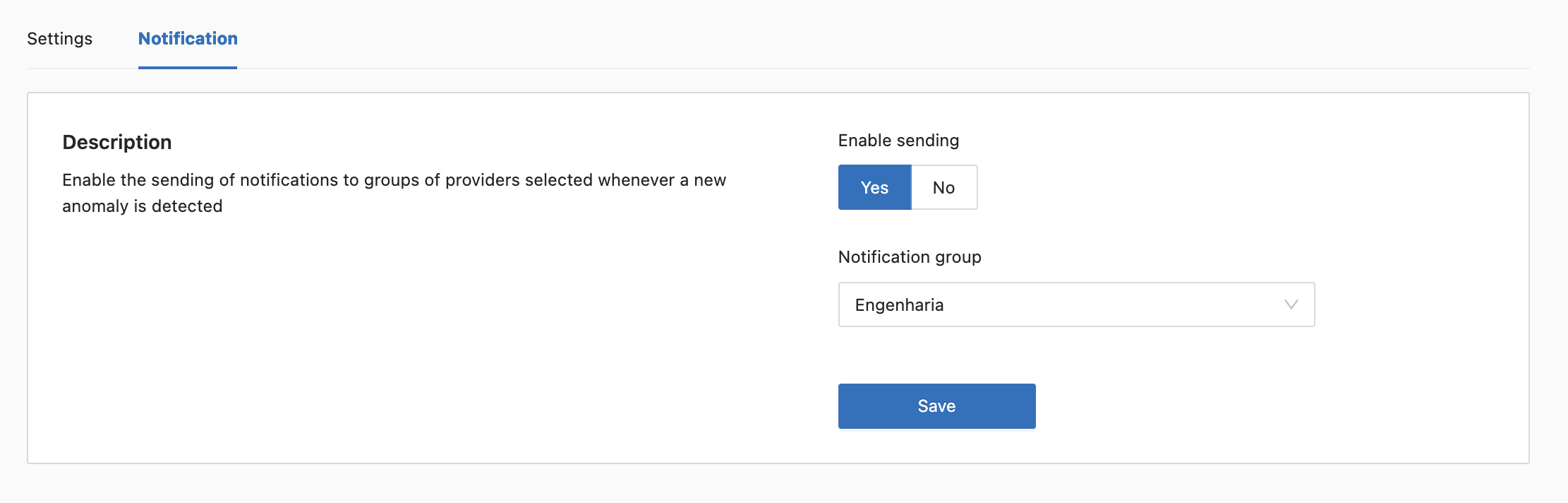To select the Notification Group, it is necessary to configure the desired groups within the [Notifications ](https://docs.piercloud.com.br/plataforma-de-finops/finops-platform-english/platform-configuration/setup-features/notifications)functionality, so that they are pre-registered and available for selection.