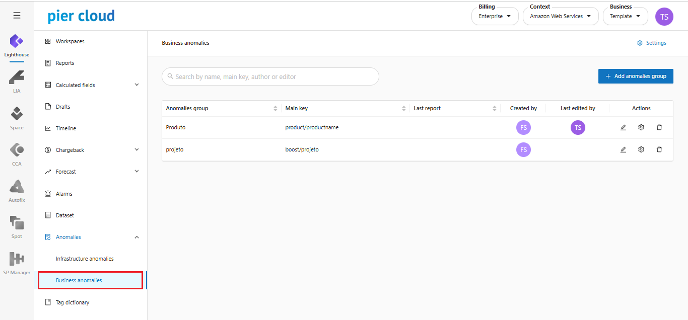 1. In Anomalies, access the **Business Anomalies** functionality: