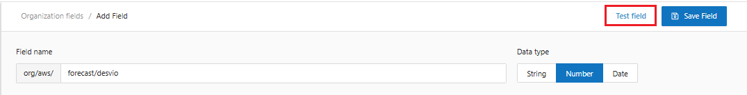 By clicking on the "Test Field" button, it is possible to test the created field before saving it.