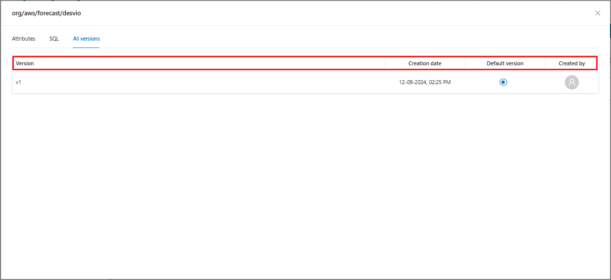 * On the **All Versions** tab, the system allows to view all existing **versions** of the field, the **creation date** of each version, the **default version** and the person **responsible** for its creation.