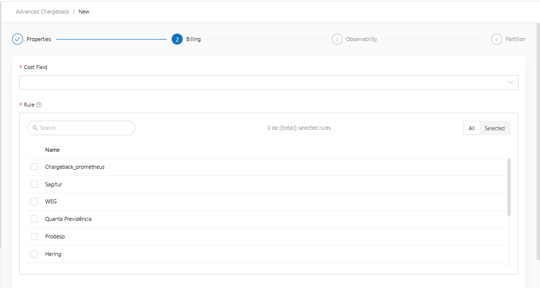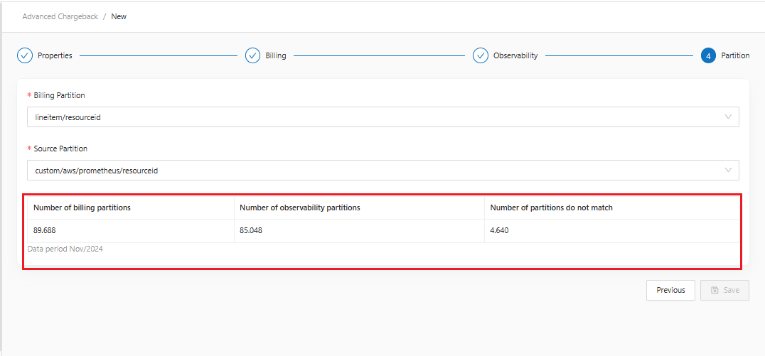 * **Source partition**: Select the field that will be used in the observability to compare with the billing.