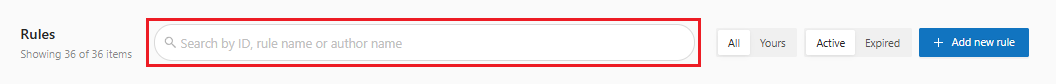 **Step 10**: Finally, on the **Rules** tab, the system allows you to filter the search by the following fields:&#x20;