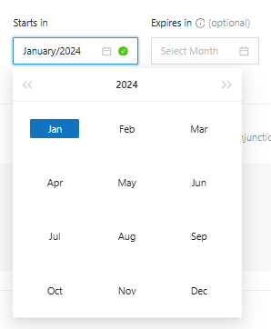 **Step 5:** Add a **Start Date** and/or **Expiration Date**. In this example, we will select January/2024.