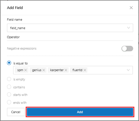 In the logical operation, we will select "**is equal to**" and choose the value listed in the "**Scope**" column.