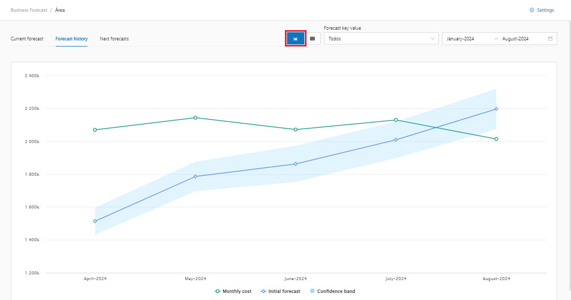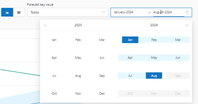 **Forecast Key Value:** We can select to show the segmented value of that specific area or select all to bring the accumulated value of all values ​​together.