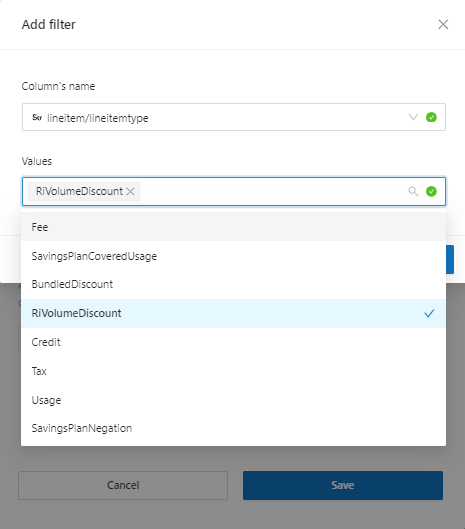 * **Cost Field**: Use this option to select the model's billing field. It will directly influence the values ​​that will be analyzed in these fields. For example, we can use the amortized cost or not, and it can even be a “**custom field”**.