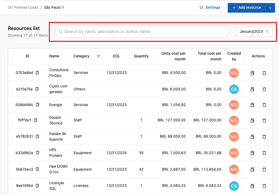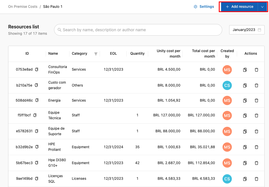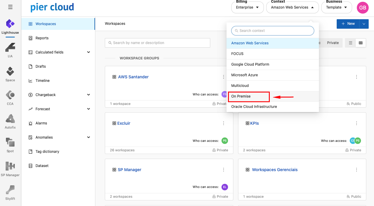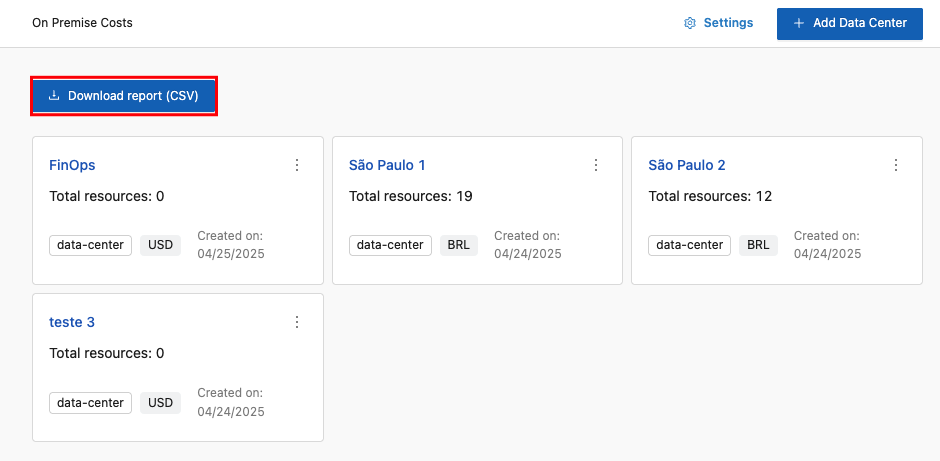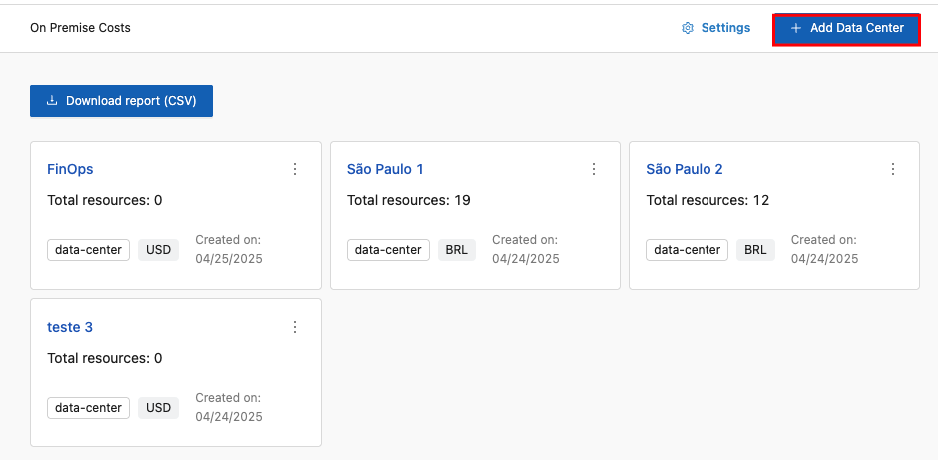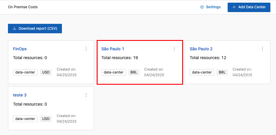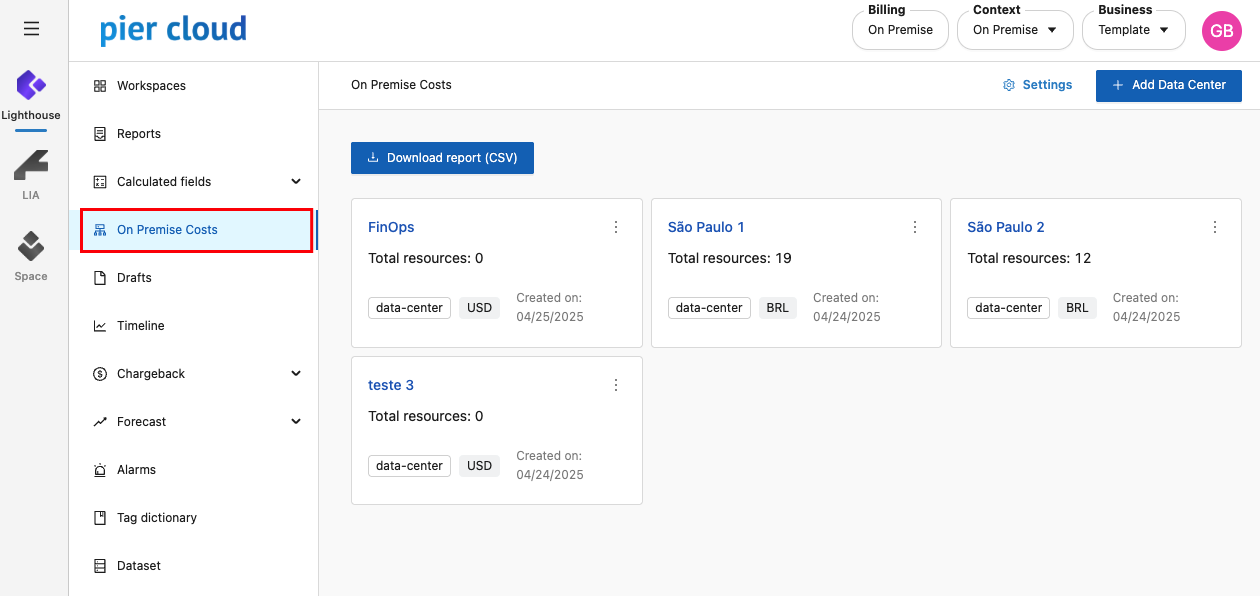 It is a Lighthouse feature enabled for the On-Premises context, allowing you to view On-Premises costs for each registered Data Center and configure additional information for each one.