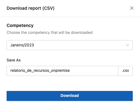 7. On the main screen, click the “Download Report (CSV)” option. The system will display the download screen, where you must provide the following information: