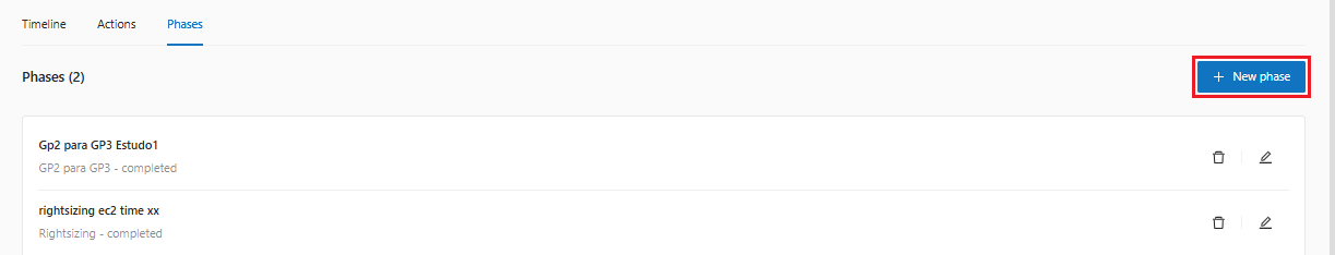 * **Implemented on**: field indicates when the phase was executed. From this date onwards, the potential savings value is reflected directly on the timeline as an effective savings.