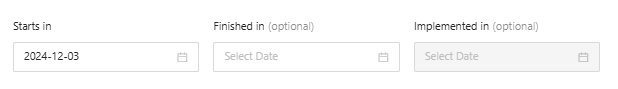 * **Ended on (optional)**: this field must indicate until when that particular phase/action will bring savings impacts to the company. In other words, if the date is 12/31/2024, this indicates that the saving action will only result in savings until the year 2024 and will not be taken into account as savings for the year 2025. This field is optional; if it is not filled in, it will take into account savings for an indefinite period.