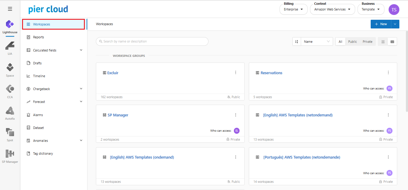The purpose of the **workspace** is to gather information from the entire cloud environment, allowing the user to centralize in a dashboard all the information that is necessary for those responsible to act with best practices in each workload of their company, being important to determine who should have access to crucial information.