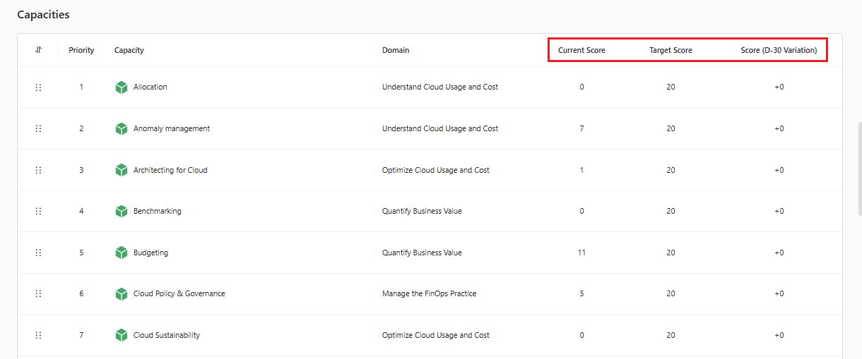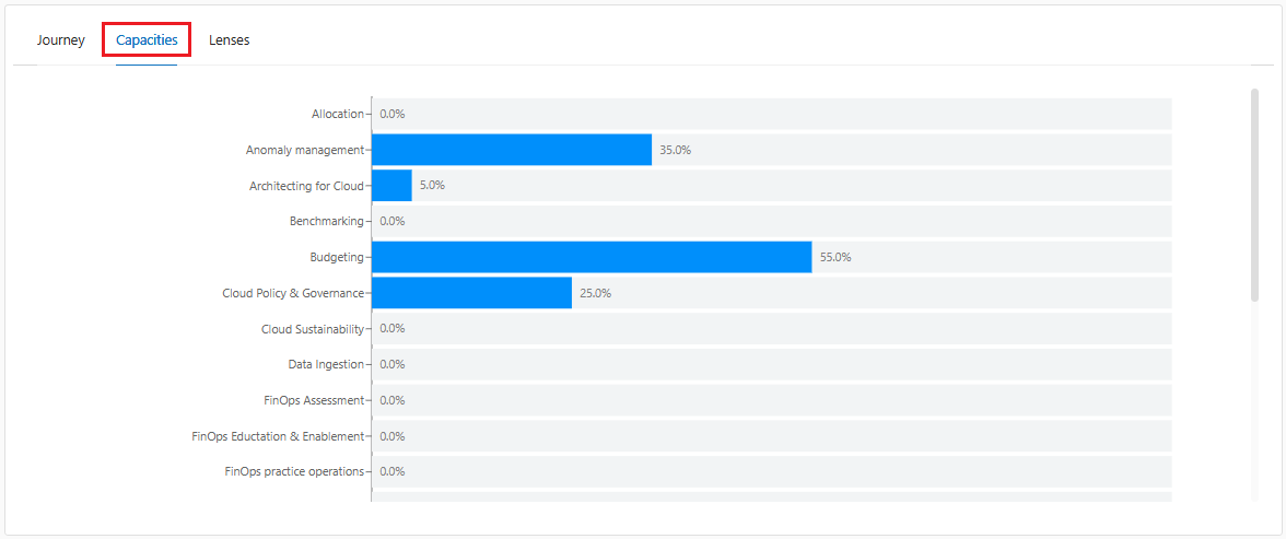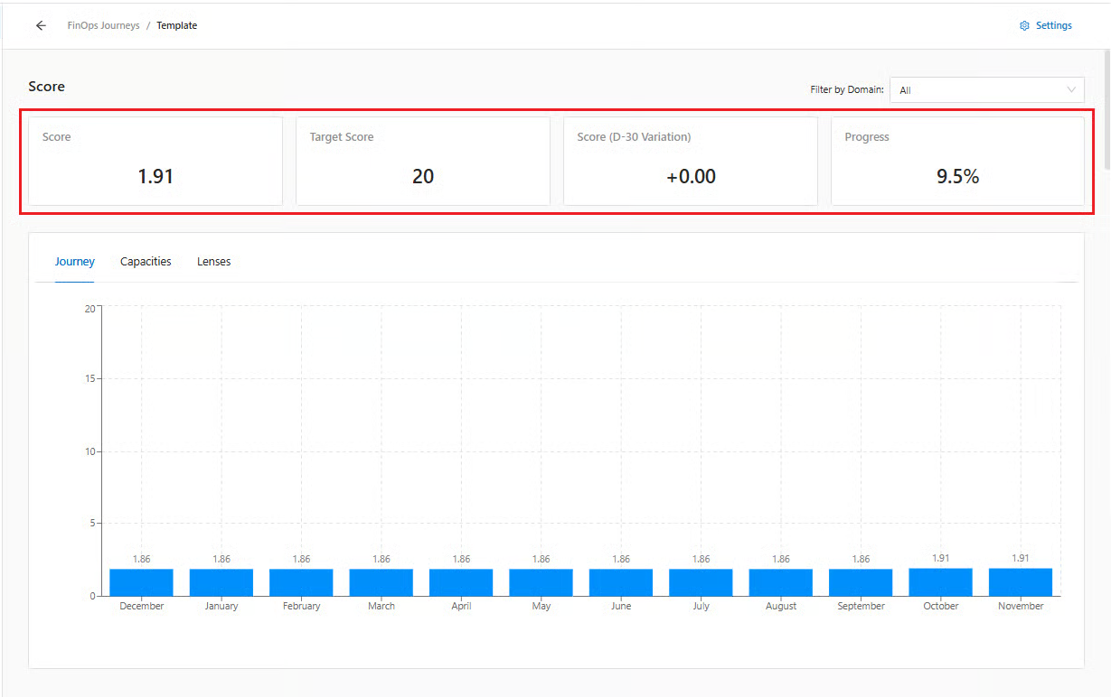 The scoring can be observed through the Journey and also through FinOps capability.