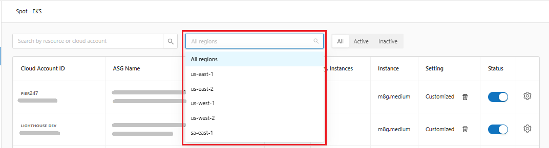 * **Status**: Filter by desired status, which can be: Active, Inactive or all