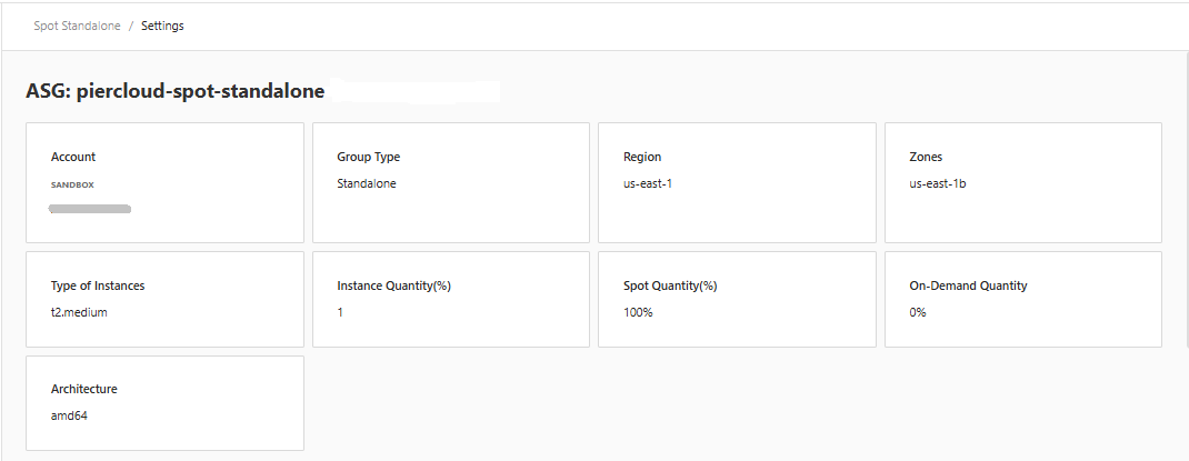 By clicking the **Show Spot** **settings** button on the desired account, the "**Standalone**" settings screen will be displayed.