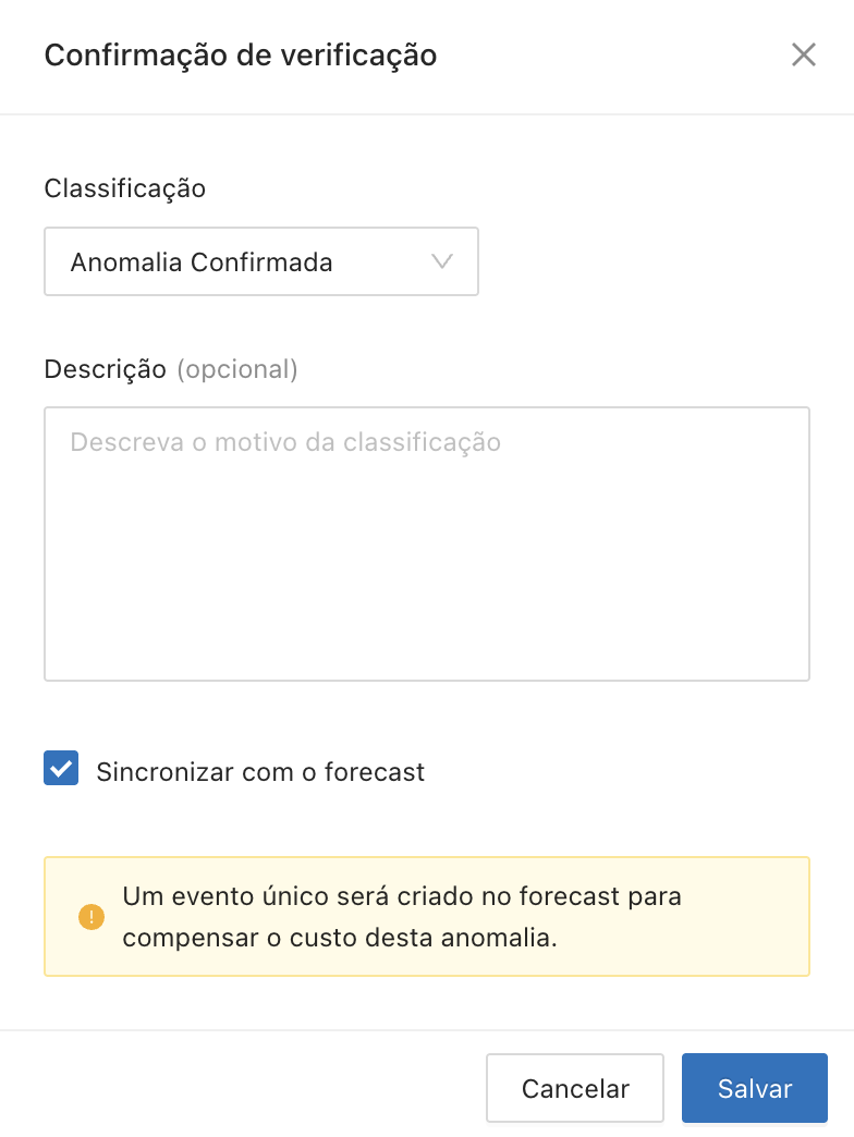 Anomalias confirmadas podem ser sincronizadas com o Forecast.
