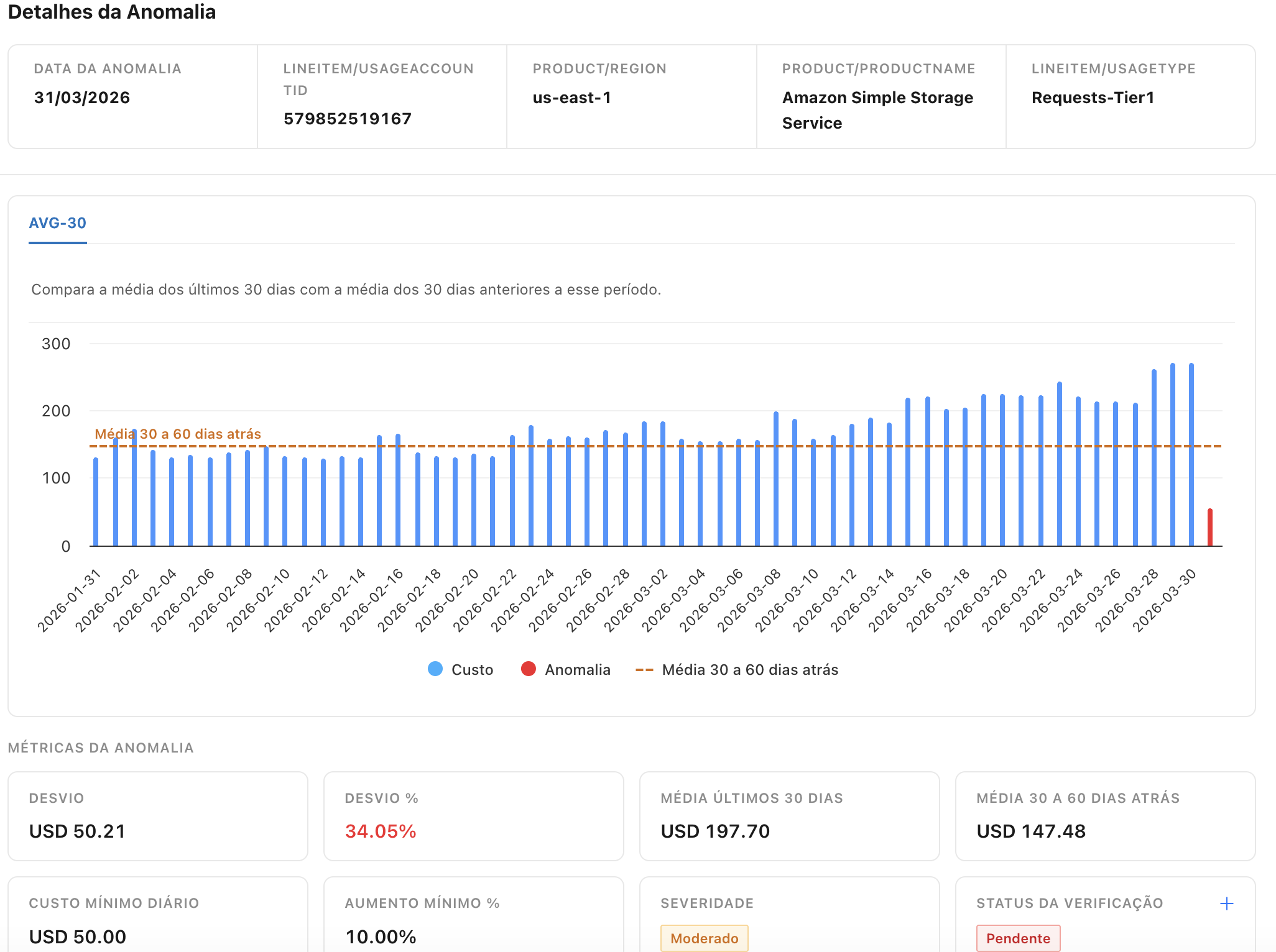* Média 30 dias (Avg 30) - Compara últimos 30 vs 30 anteriores.